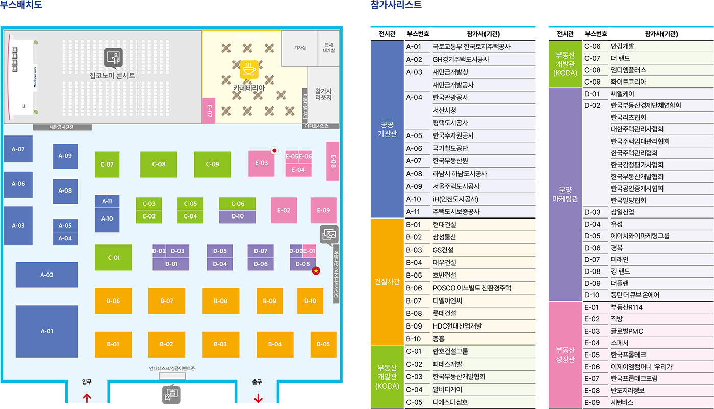 국토교통부, 새만금개발청, 한국토지주택공사, 인천도시공사, 서울주택도시공사, 새만금개발공사, 한국수자원공사, 한국관광공사, 주택도시보증공사, 국가철도공단, 한국부동산원, 대한건설협회, 한국주택협회, 한국부동산개발협회, 한국프롭테크포럼, 한국부동산분양서비스협회, 현대건설, 삼성물산, 지에스건설, 디엘이앤씨, 포스코이앤씨, 대우건설, 한국토지신탁, 대한건축사협회